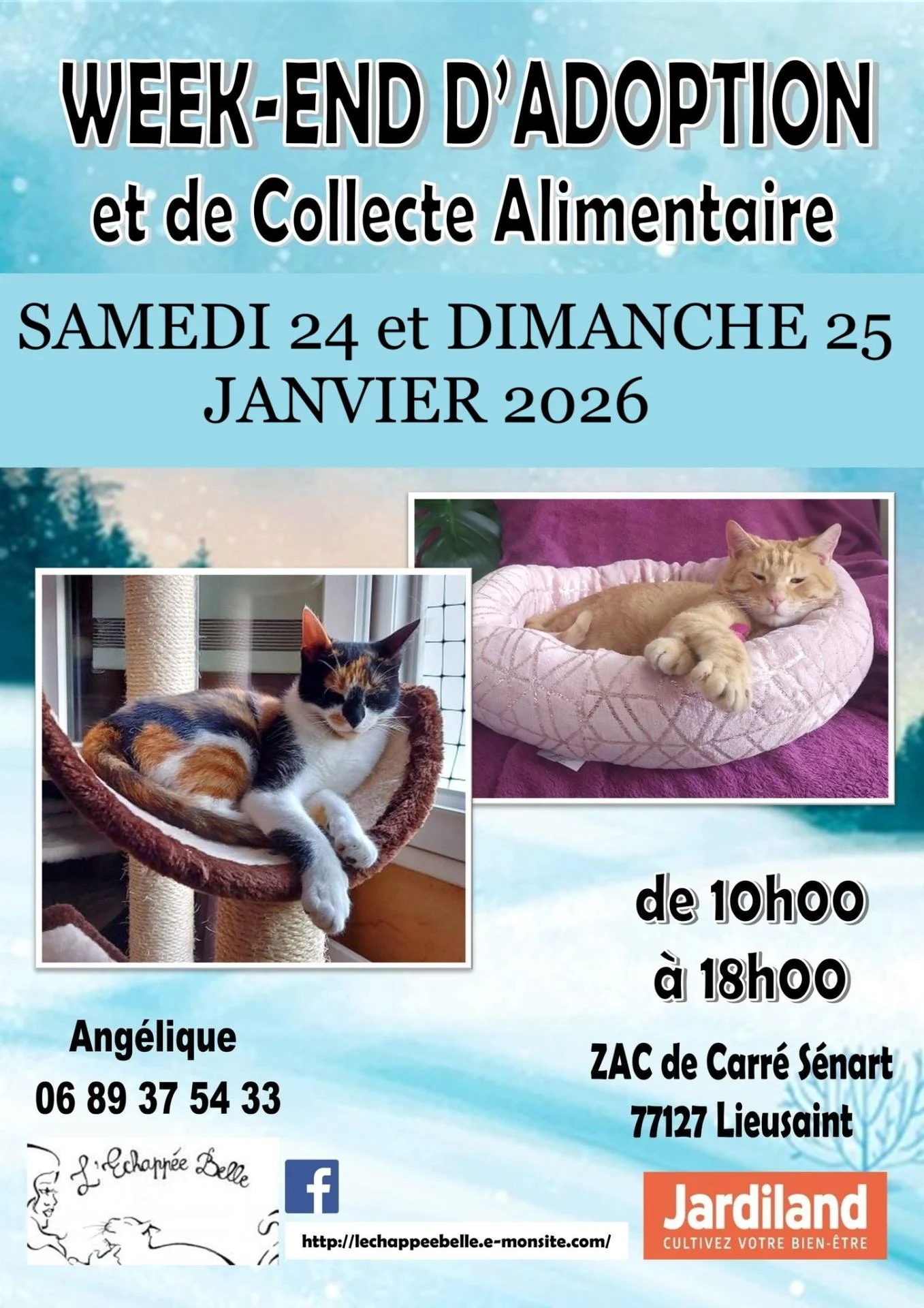 24 et 25 janvier 2026: Week-end d'adoption et de Collecte au Jardiland de Lieusaint-Carré Sénart.