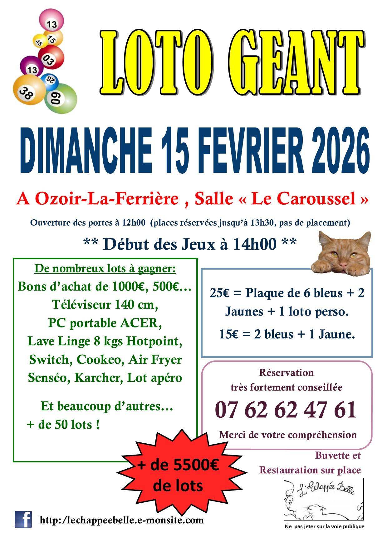 Dimanche 15 février 2026: LOTO Géant à la salle "le Caroussel" d'Ozoir-le-Ferrière au profit de l'association !