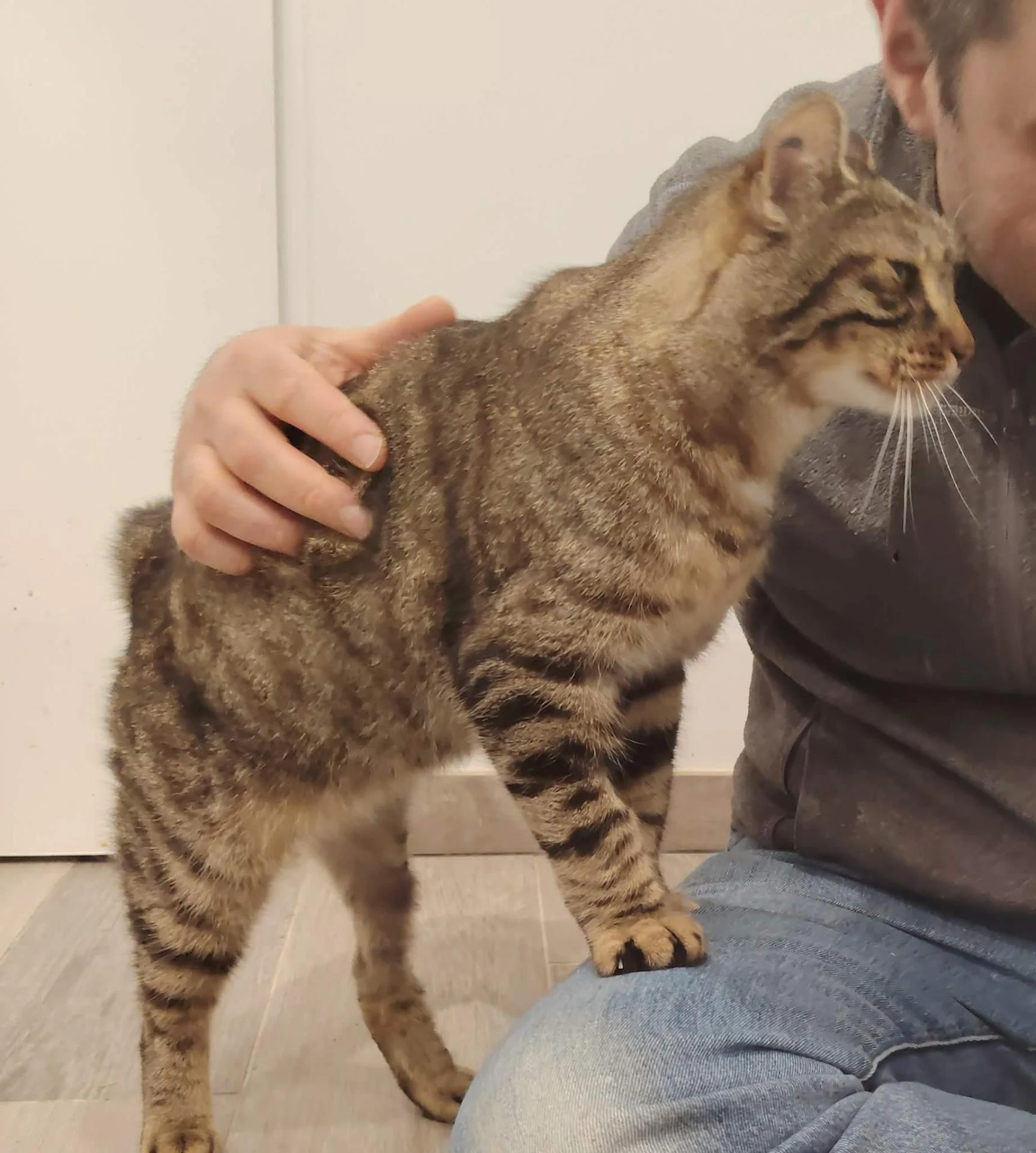 Il avait été trappé, identifié, stérilisé, puis relâché chez des particuliers qui ont continué à le nourrir et à veiller sur lui. Au fil du temps il s'est un peu sociabilisé avec eux.