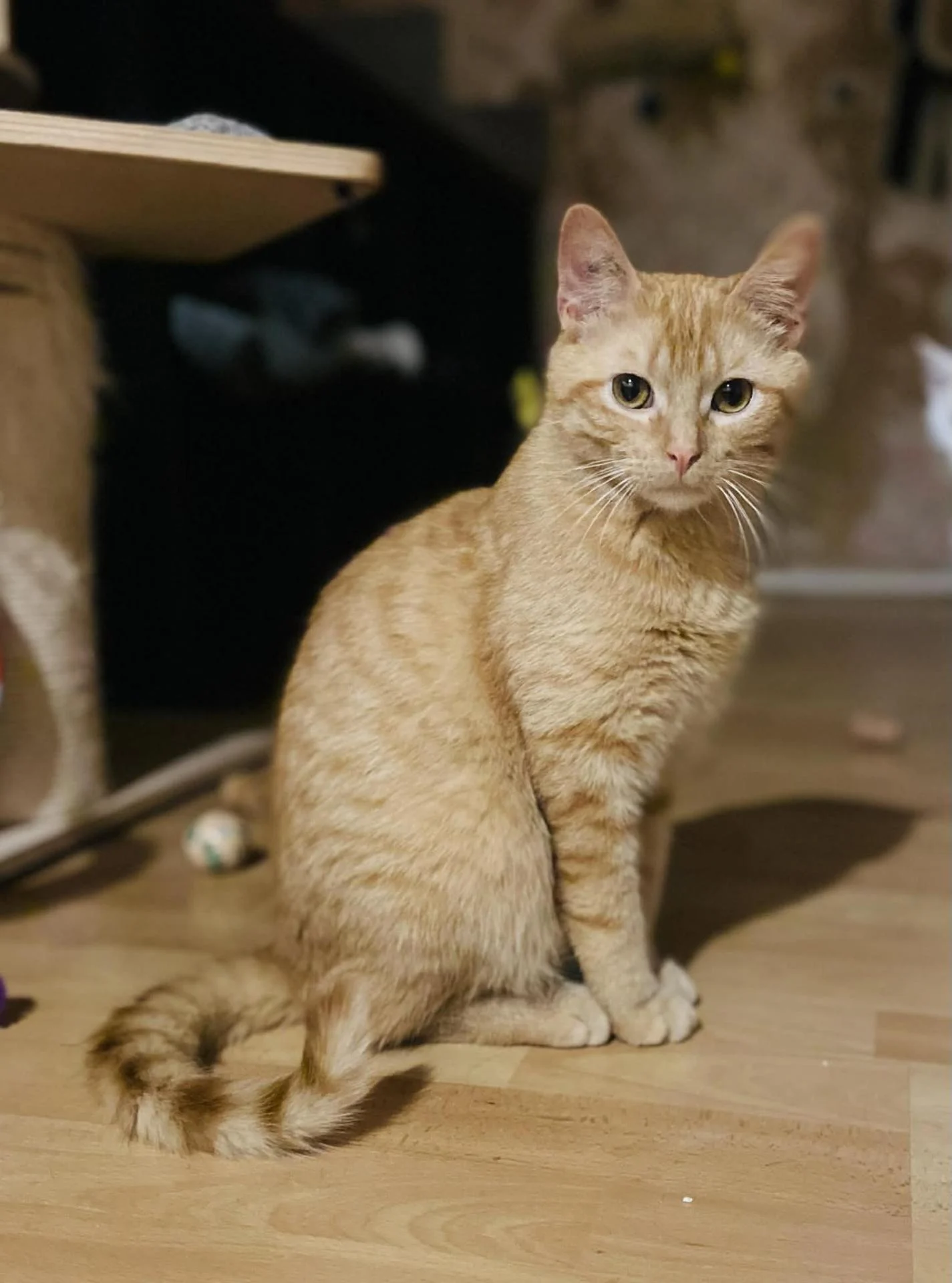 C'est un chaton vif et joueur. Aucune balle, plume ou boule de sapin ne lui résiste ! Il est curieux, aime sauter, grimper, explorer, et surtout jouer avec les copains !