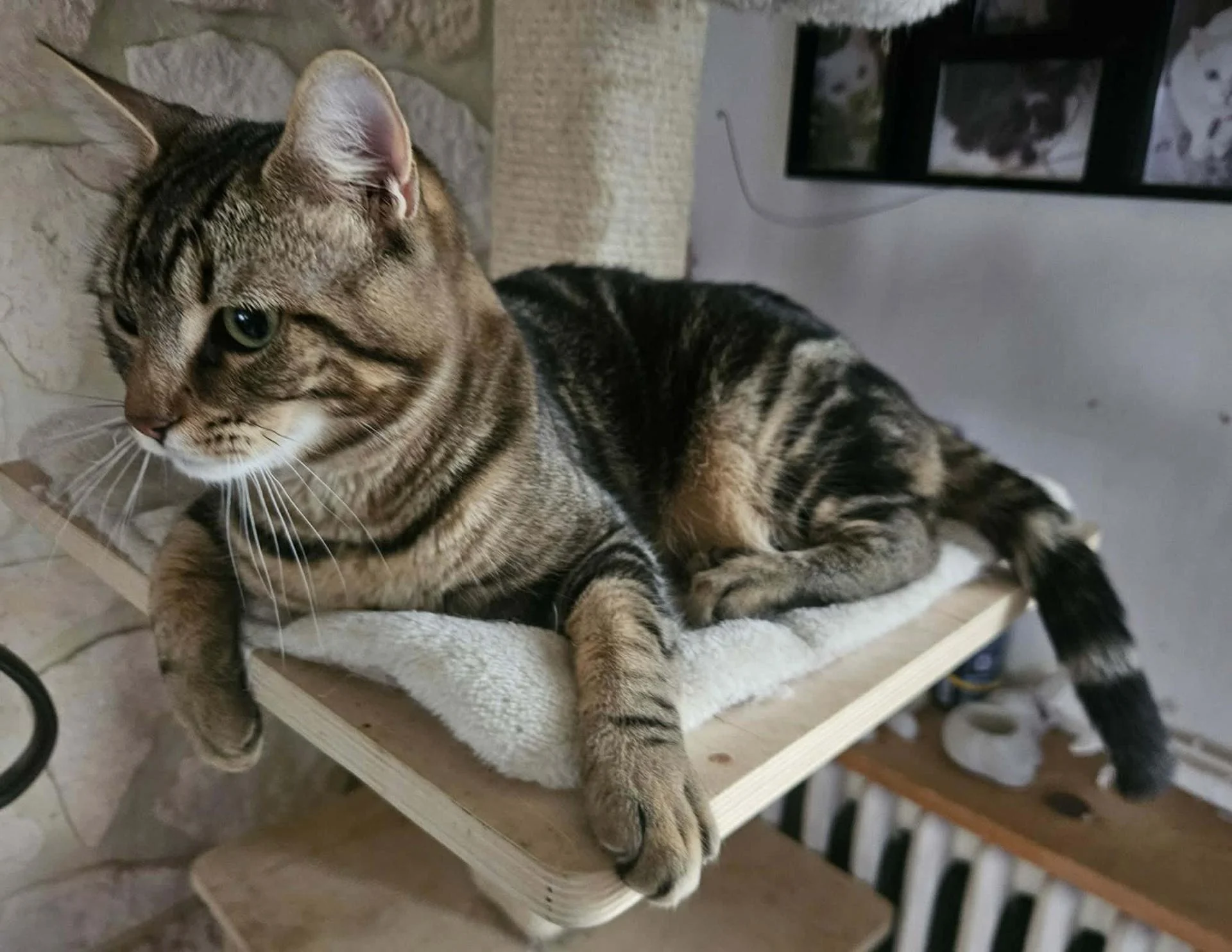 Elle aime dormir sur les arbres à chats et peut venir tenir compagnie selon ses envies durant la nuit.