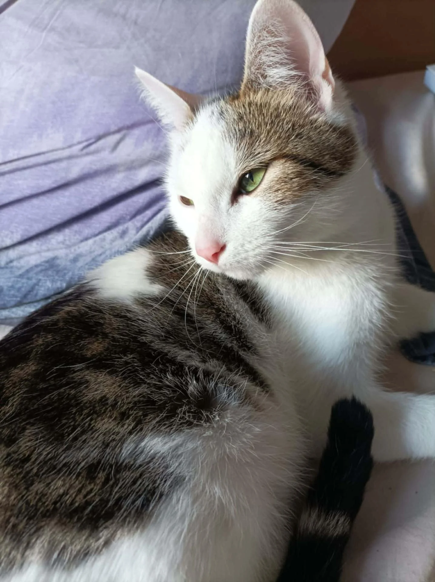 Je suis une chatte bien dans mes patounes et très à l'aise partout. Je ne suis vraiment pas du genre timide. Par conséquent, si vous travaillez, ça ne sera pas un problème pour moi car j'attendrai sagement votre retour le soir.