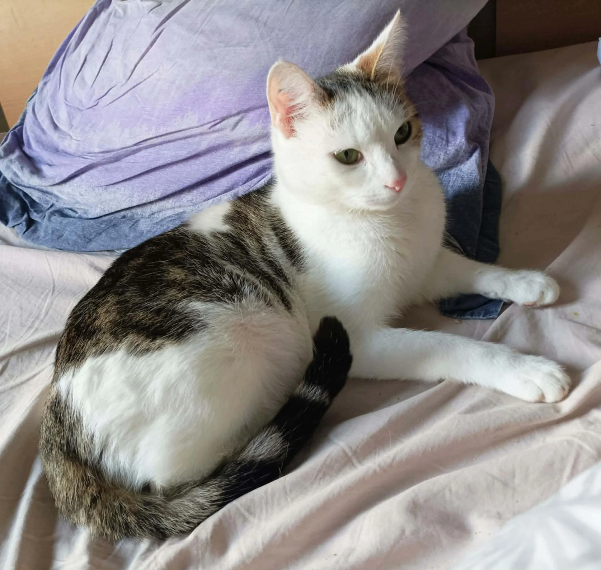 C’est une minette très proche de l’humain, qui adore les caresses et les moments de jeu avec sa famille d’accueil.